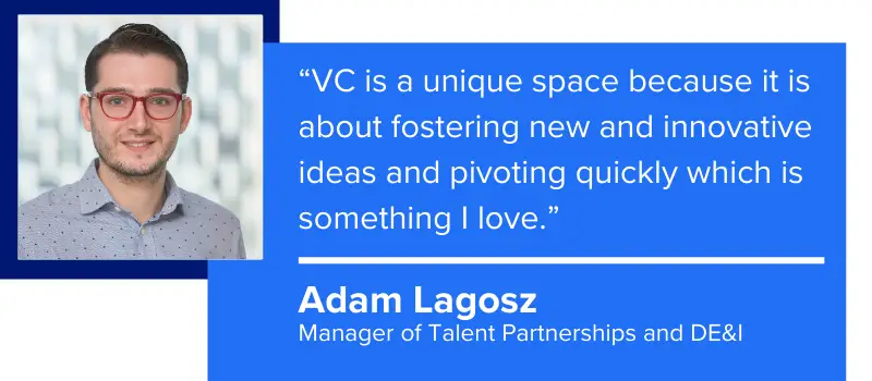Adam ve la necesidad de una mayor representación de minorías subrepresentadas en todo el ecosistema de VC. Explicó que el programa de educación es una forma de acelerar las carreras de los estudiantes si quieren unirse a una empresa de capital riesgo o educación física.